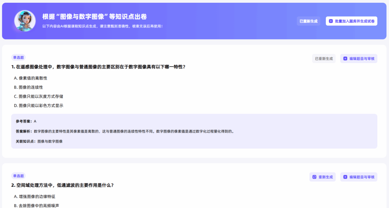 AI自动生成试卷