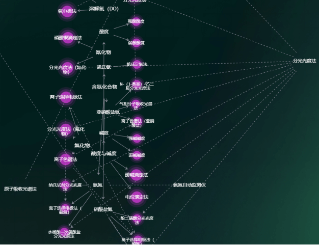 《环境监测》课程涉及大量实验检测相关的学习内容,知识点之间相互交叉、联系紧密,分类方式多样化,既可以依据实验类别进行分类,也可以围绕检测对象展开。学生在学习时容易感到思路不清晰,难以理顺知识体系。为了帮助学生更高效、更全面地理解和运用环境监测基础知识,课程拆解出428个知识点,进行智能整合关联,形成知识网络,引导学生深入理解知识点之间的内在联系,培养系统思维能力。