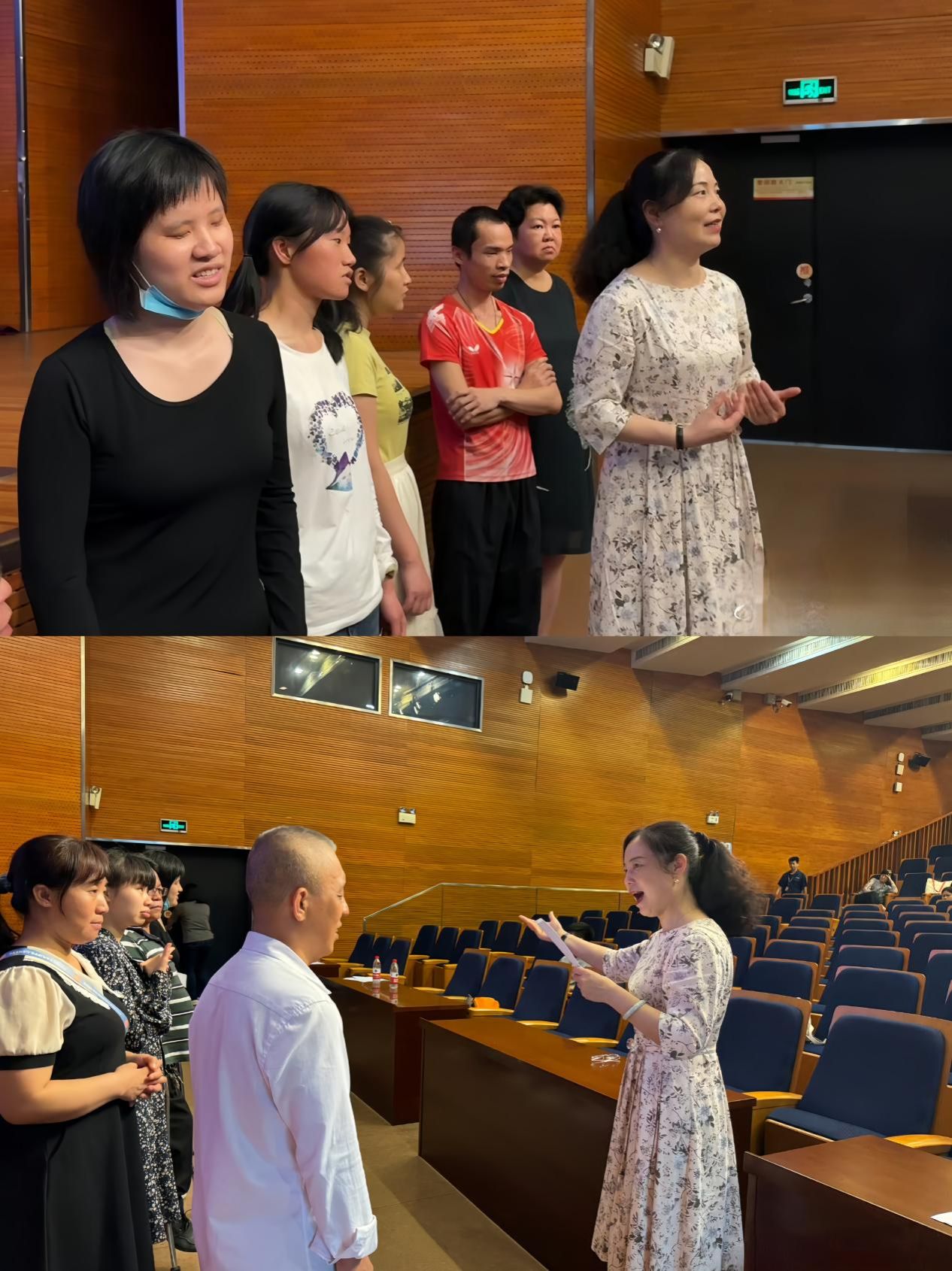▲图6 张爱凤教授(右)指导残障人士开展诵读活动