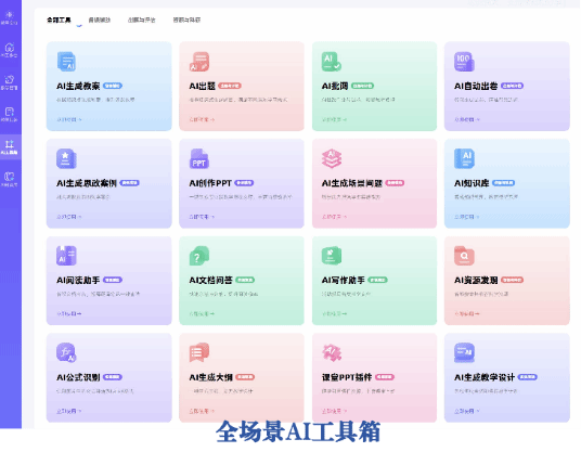 智能备课中枢——智创工坊平台配备全场景AI工具箱,涵盖AI生成教案、智能出题、教学设计优化等实用功能,为教师提供便捷的“一键式”教学资源与策略推荐,显著提升备课的效率与质量。