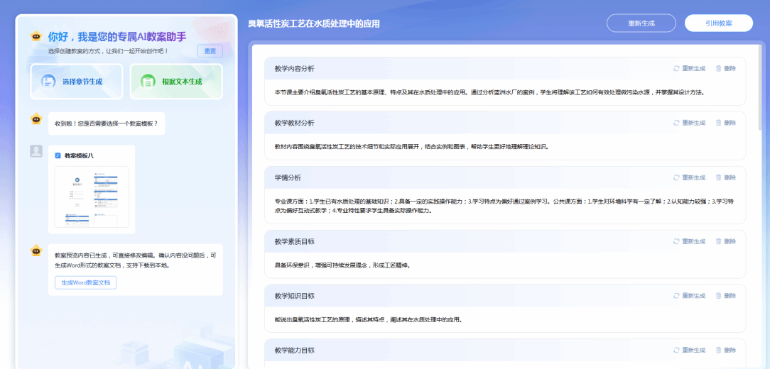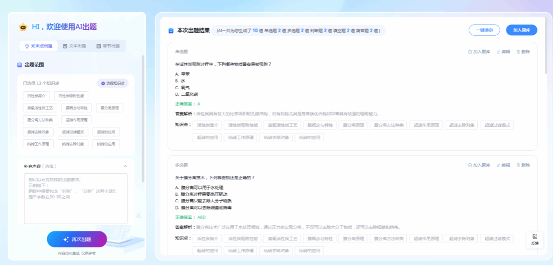 - 智能教辅系统:通过识别教师导入的课程教学大纲或书籍教材文件,快速生成高质量的教学内容(图8);根据课程资料库自动梳理相关知识点,按照题型要求生成课程练习题(图9)。