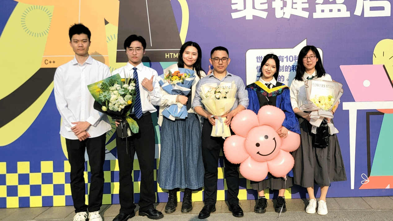 饶老师与毕业生合影留念