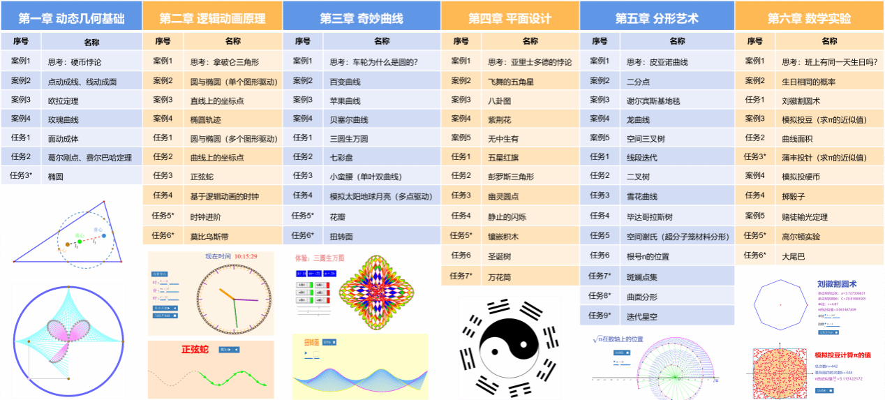 由于通识选修课“动态几何与逻辑动漫”选课学生涵盖全校各专业,为适应不同专业背景及不同层次的学生,饶永生老师对教学内容进行了多次重构优化,一方面,引入团队在数学机械化和教育信息技术领域的科研成果,丰富学习内容;另一方面,综合考量学生专业特色及经验,将学习内容与学科知识、数学文化、趣味问题、生活案例等进行深度融合,建设阶梯式学习任务,并在教学过程中持续迭代优化课程内容,综合设计60多个学习任务和教学案例,形成了兼具知识性、创新性、趣味性及挑战度的教学内容。一名学生感慨:“饶老师的课像闯关游戏,每解决一个难题,都能感受到思维的飞跃。”