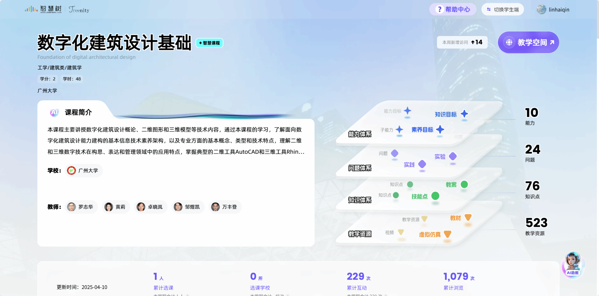 《数字化建筑设计基础》课程页面