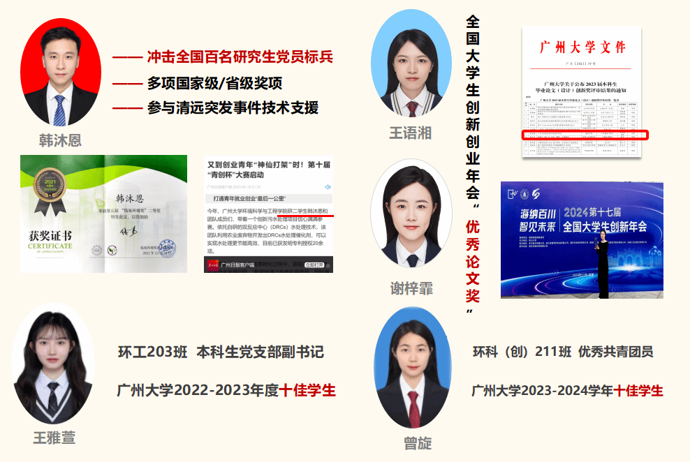 通过课程、实践、思政、第二课堂“四课联动”浸润式教育模式,强化学生生态文明素养和职业使命感。与沥滘净水厂、海珠湿地等企事业单位共建实习实践基地,在蓝天、碧水、净土中沉浸式感受“美丽中国”“健康中国”的魅力,深刻领悟生态文明建设的意义与内涵。打造“环保思政”特色品牌,成立“青柏”生态文明宣讲团,定期组织师生到江古山村,面向村民、学生开展习近平生态文明思想宣讲活动,在课堂中传播习近平生态文明思想,讲好生态文明课程思政,将生态文明、绿色环保的理念根植在祖国的大地上。思政育人实效落实于学生综合素质提升,在“德才兼备、家国情怀”育人目标的引领下,我院多个班级获“优良学风标兵班”称号,韩沐恩获“全国优秀党员标兵”称号。王语湘、谢梓霏获全国大学生创新年会优秀论文奖、王雅萱、曾旋获评九游ag网页版直接进入_九游(中国)“十佳学生”等称号。