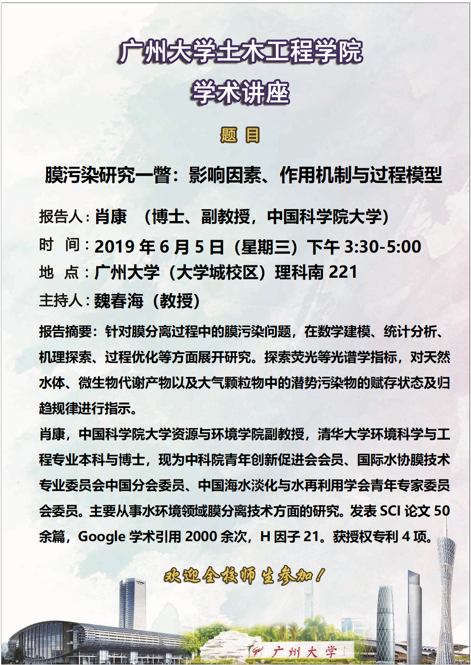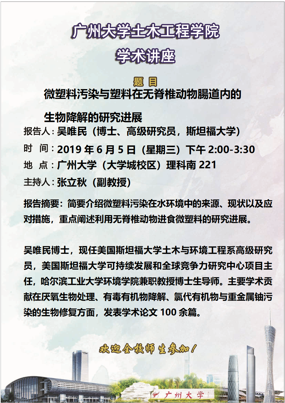 上一条:学术报告(Alessio Fiscella助理教授,2019.6.4) 下一条:土木工程学院学术讲座(6月4日)