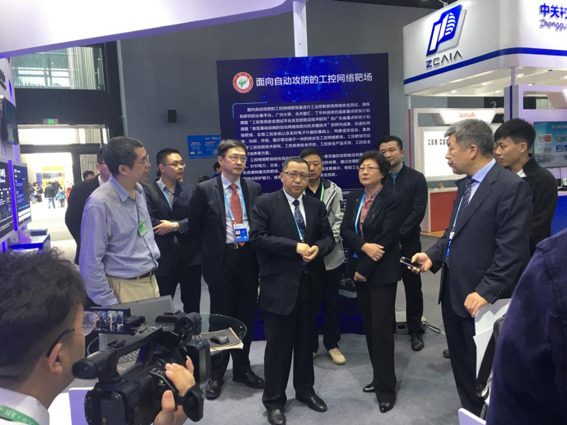 大会开始前,中国网络空间安全人才教育联盟理事长、我校网络空间先进技术研究院方滨兴院士到达我校展台指导工作。展会期间,中宣部副部长、中央网信办庄荣文主任、刘烈宏副主任、中国网络空间安全协会王秀军理事长、李欲晓秘书长、张健副秘书长等领导分别到展台参观指导。中国电信网络与信息安全研究院张颉华院长,有“中国因特网(Internet)之父”“中国反黑客第一人”之称的中国科学院高能物理研究所网络安全实验室首席科学家许榕生研究员也来到展位参观了解项目的开展情况,许榕生研究员对“虚实互联工控靶场”这一理念名称表示赞许。此外,包括“网安人才实训系统”在内的方院士团队多项成果也作为中国网络空间安全人才教育联盟成员单位成果在本届大会期间展出。