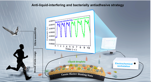 近期,国际功能材料顶级期刊《Advanced Functional Materials》(IF= 15.621)报道了我校化学化工学院林璟副教授等题名为“Anti‐liquid‐Interfering and Bacterially Antiadhesive Strategy for Highly Stretchable and Ultrasensitive Strain Sensors Based on Cassie‐Baxter Wetting State”的最新研究成果。