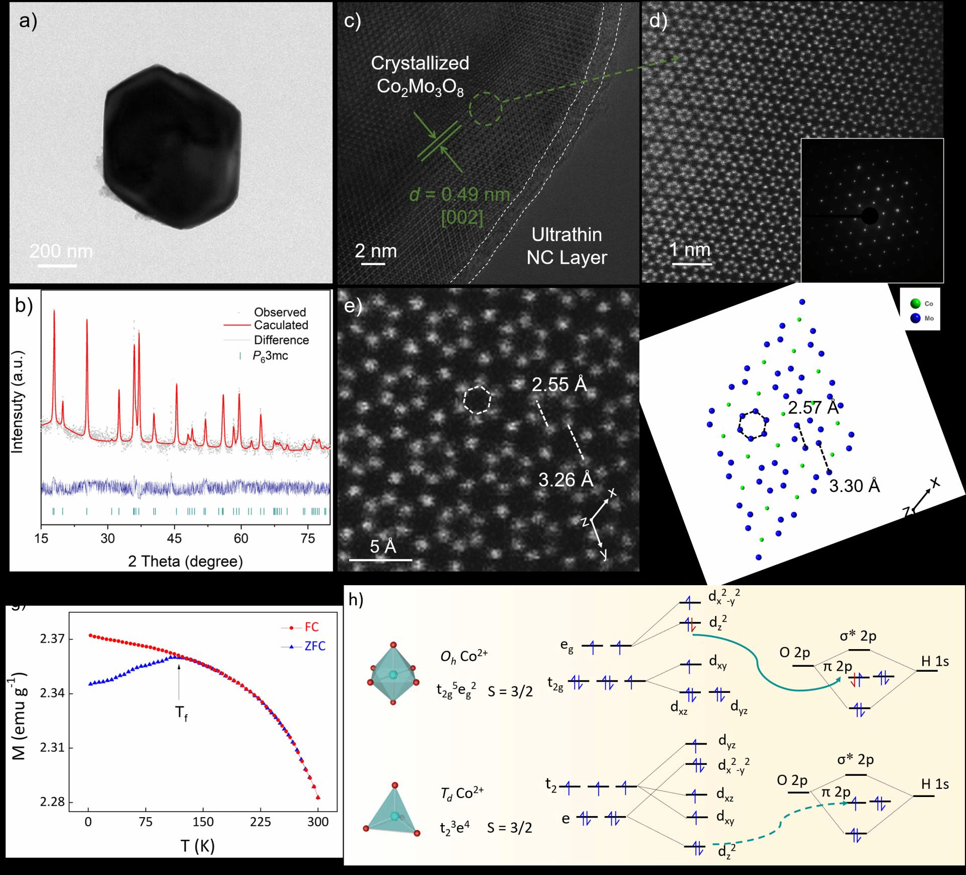 本网讯日前,我校清洁能源研究所刘兆清教授团队,在揭示palmeirite oxides OER催化活性−催化位点关系方面取得新进展,证实Co2Mo3O8中的四面体Co (TdCo2+) 相对于八面体Co (OhCo2+) 能够更加有效的降低OER反应决速步能垒,加速OER反应的进行。国际化学类顶尖期刊Angewandte Chemie International Edition全文发表了这一研究成果“Coupling Magnetic Single-Crystal Co2Mo3O8 with Ultrathin Nitrogen-Rich Carbon Layer for Oxygen Evolution Reaction”(耦合具有磁性的单晶Co2Mo3O8与超薄富氮碳层用于氧催化反应)。九游ag网页版直接进入_九游(中国)为唯一通讯单位,引进人才欧阳婷博士为论文第一作者,刘兆清教授为论文唯一通讯作者。