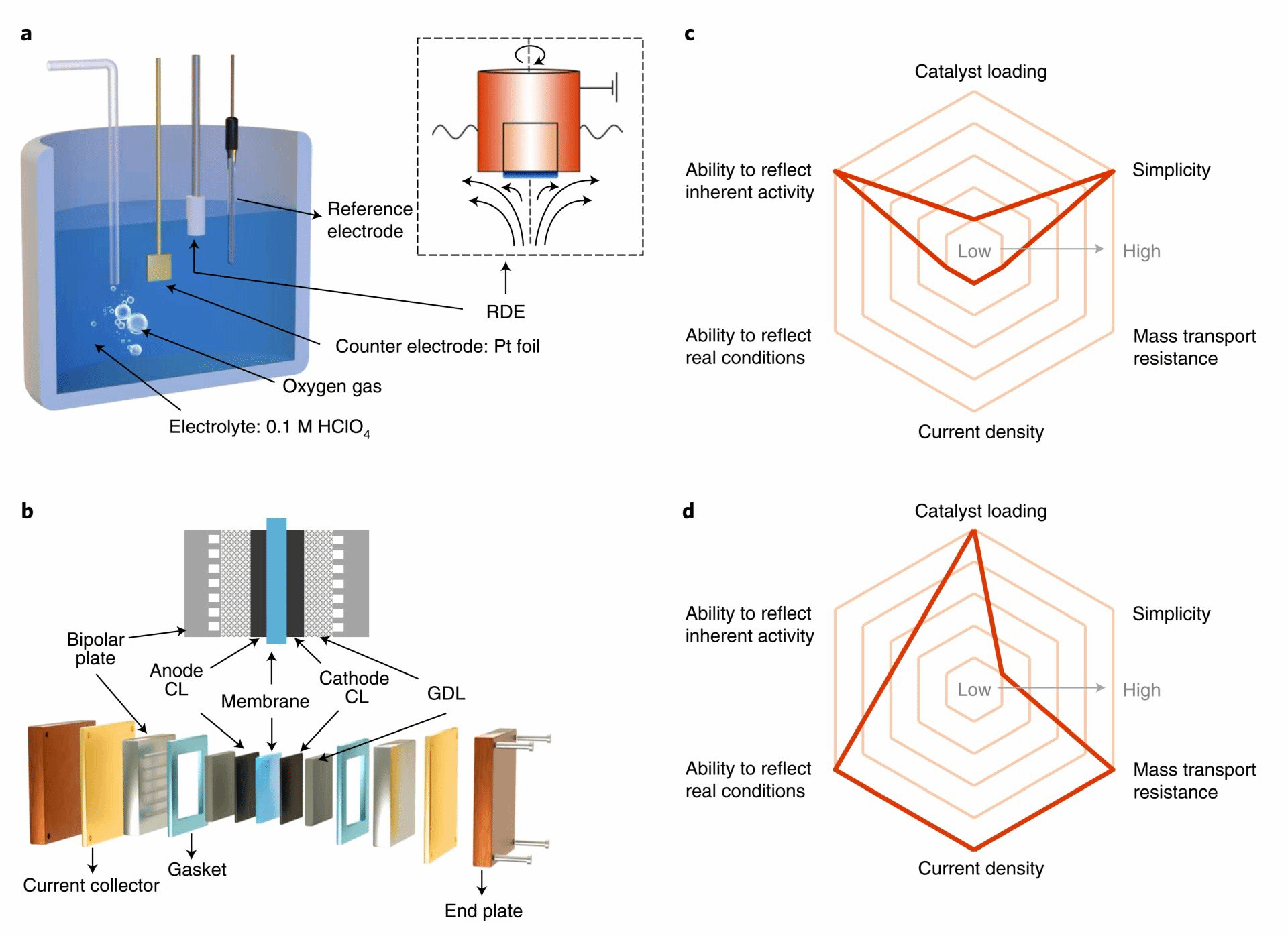 质子交换膜燃料电池是氢能高效利用,实现碳中和、碳达峰目标的重要技术之一。针对燃料电池阴极催化剂的研究持续了几十年,催化剂的本征活性也得到了长足的提升。然而,绝大多数超高催化性能是基于三电极体系评价得到的,即旋转圆盘电极RDE。一方面,这些RDE测试中得到的超高性能并不完全能够在燃料电池膜电极MEA中得以体现,尤其是在铂基催化剂载量较低时;另一方面,RDE和MEA各自具有局限性,二者差别较大。