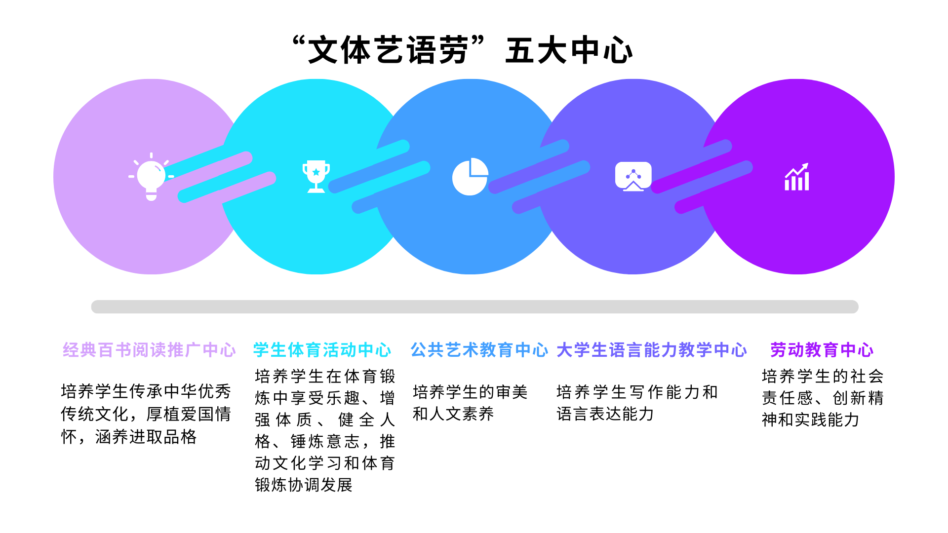 我校秉承立德树人、专通相融、体艺见长、个性发展的人才培养理念,健全全员、全过程、全方位育人体系,深化教育教学改革,创新人才培养体系,以“德才兼备、家国情怀、视野开阔,爱体育、懂艺术,能力发展性强”为人才培养目标,设立“文体艺语劳”5个公共素质教育中心,致力于培养具有九游ag网页版直接进入_九游(中国)底色的创新型人才。