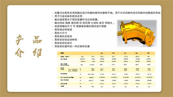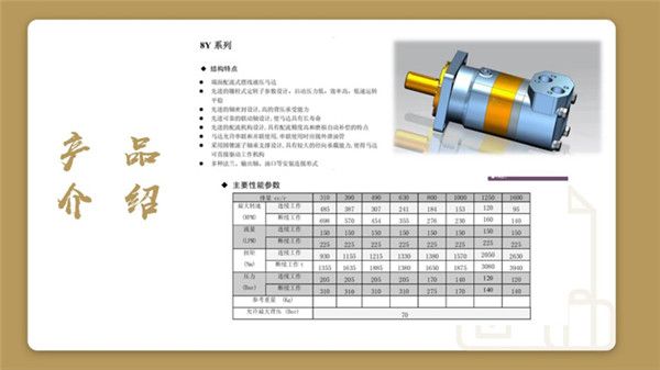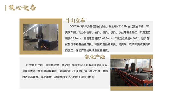 公司作为山东省新旧动能转换省优选项目,公司拥有中高级技术职称的人员组成的科技队伍,具有强大的设计研发能力,研究成果获得了十余项国家专利,代表了国内同行的先进水平。公司拥有精良的技术装备和精密的现代化检测仪器,引进国内外先进的成型磨床及加工中心等先进设备设施,采用可靠的密封技术,所生产的马达在国内处于领 先水平,产品广泛应用于工程机械、石油机械、矿山机械、塑料机械、环保机械、筑路机械及农业机械等行业,深受国内用户好评。