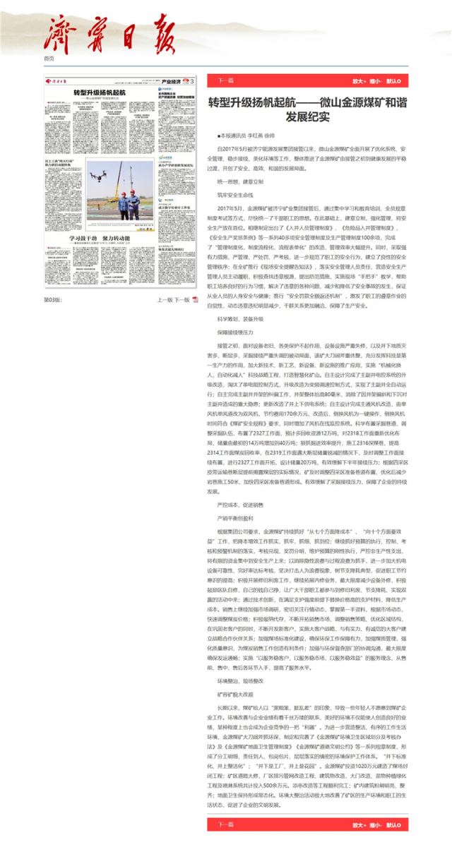 《转型升级扬帆起航——微山金源煤矿和谐发展纪实》