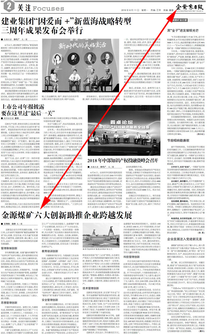 《企业家日报》2018年6月11日 2版关注: